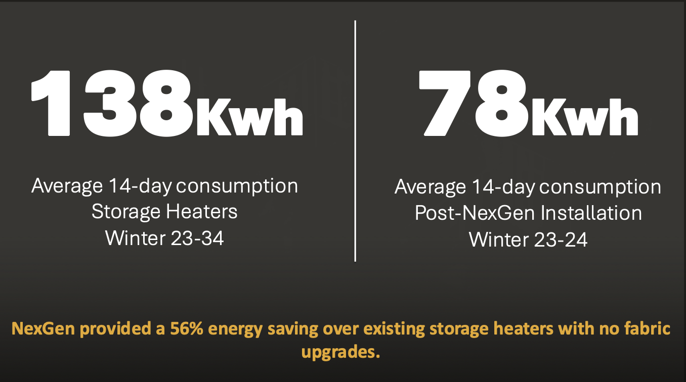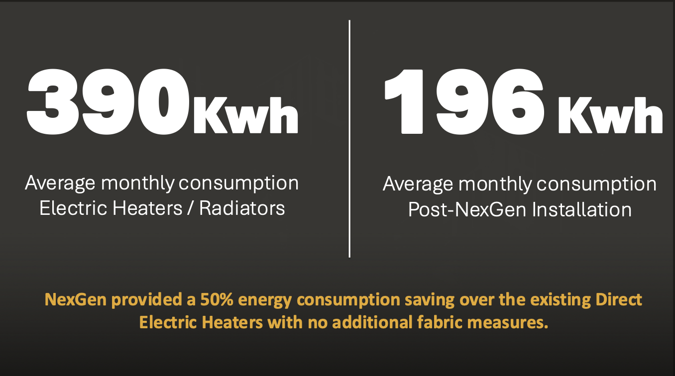 NexGen has significant in-field pilot schemes running in test houses for real-world data collection and comparison with existing in-property systems. Please get in touch, and NexGen will be happy to provide deeper data insights on these trials.