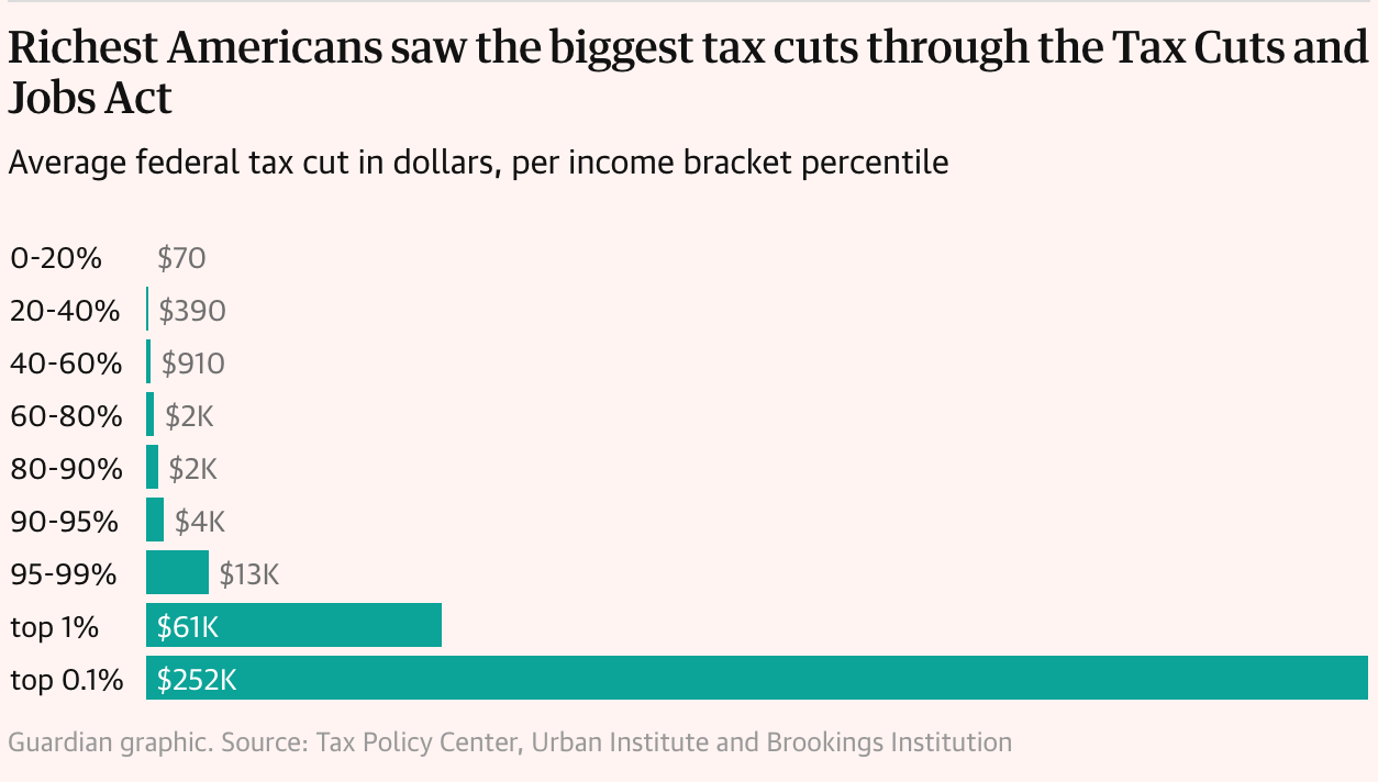 You can read the full breakdown and receipts for all the impacts here. The tax cuts for the wealthiest are estimated in the $trillions, and it's likely to add $3-4 trillion to the national debt. More here.